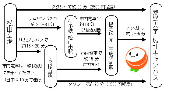 今回の会場は松山市中心部および道後温泉からのアクセスが容易なため、宿泊施設の紹介はいたしません。
